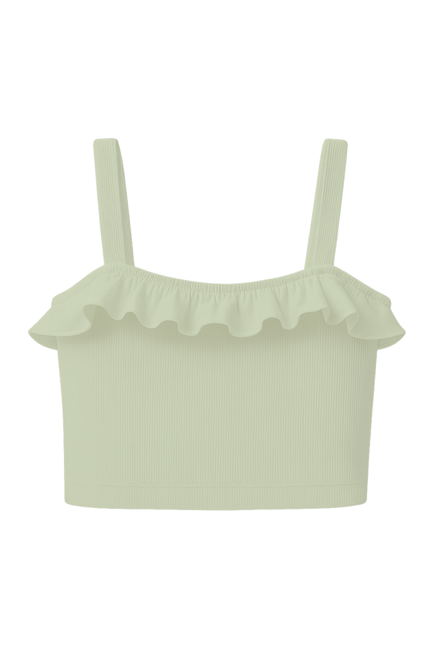 RIBBED KNIT CROP TOP WITH RUFFLE TRIM