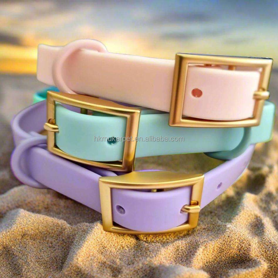 Product name:Marine blue Stylish gold buckle dog collar PVC pet collar