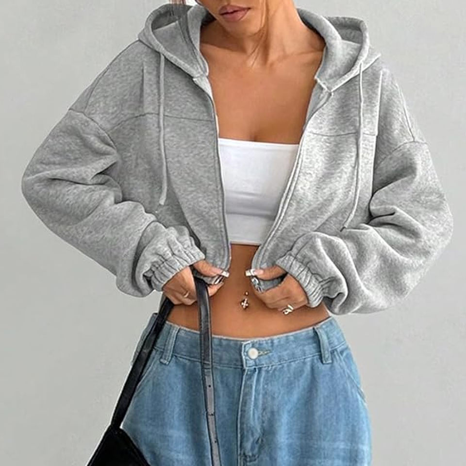 Nombre del producto:Sudadera Corta con Capucha y Cremallera para Mujer