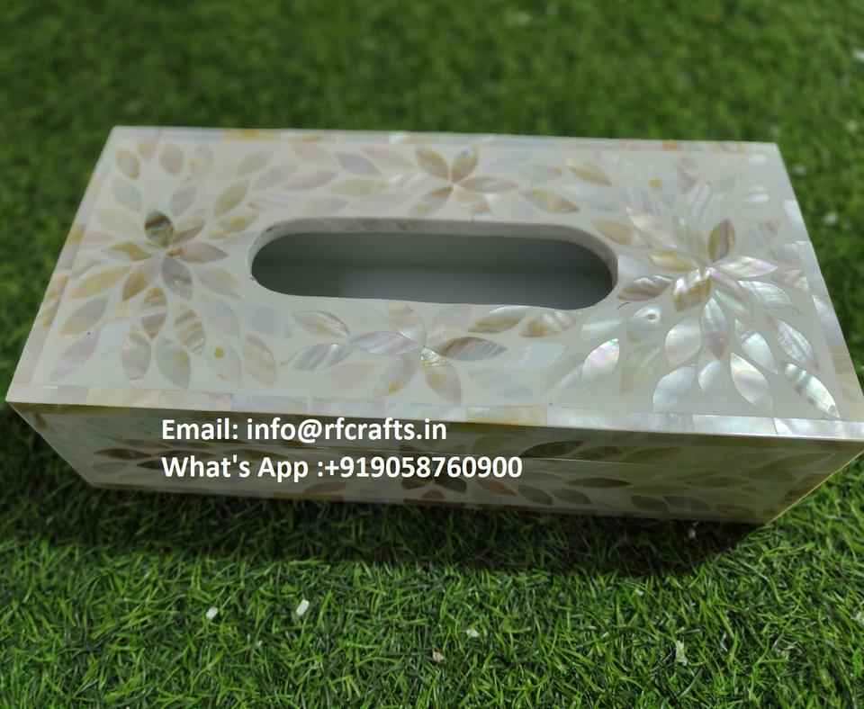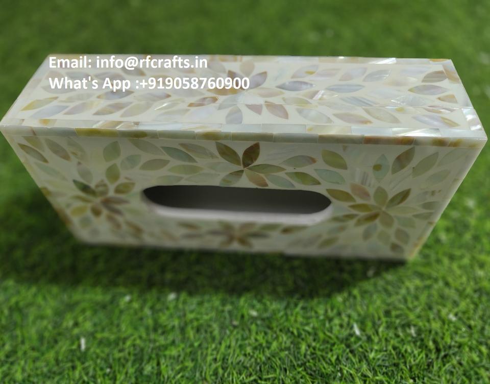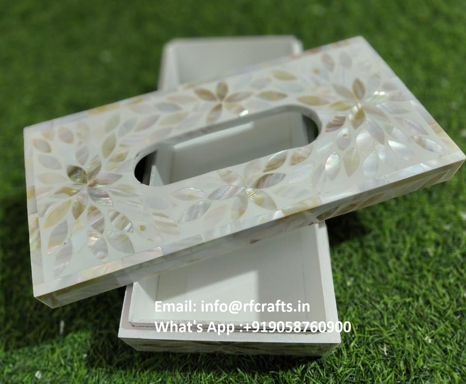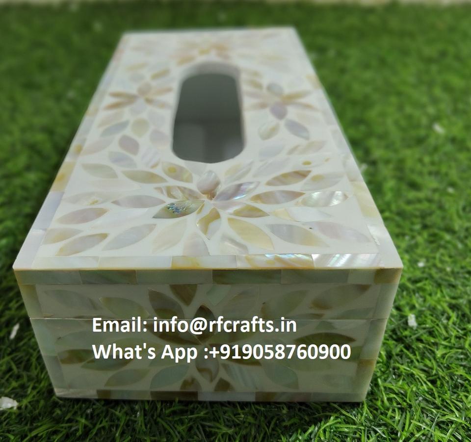 Elegante caja de pañuelos de mesa con detalles de nácar Premium