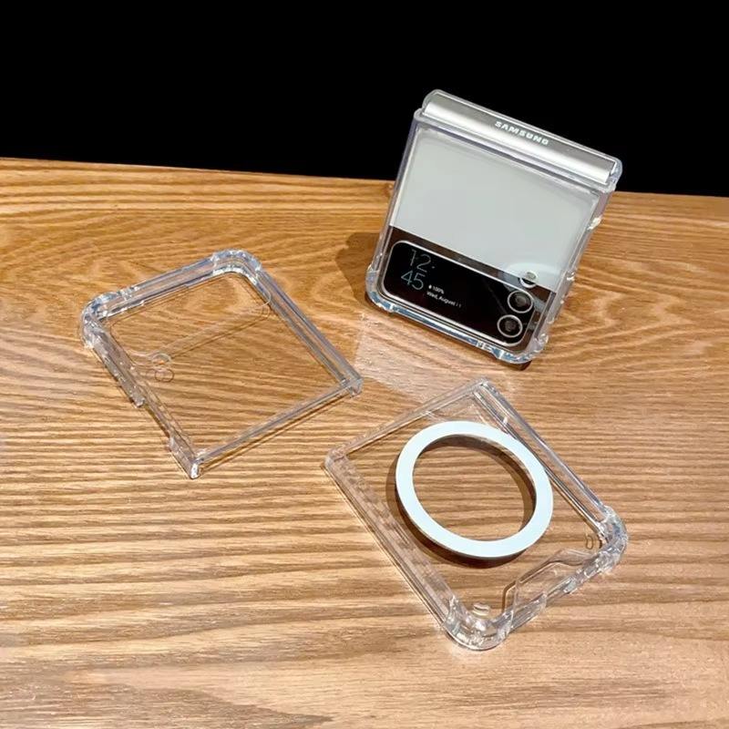 Elegante carcasa de teléfono de diseño acrílico transparente para Samsung Z Fold Flip 7 6 3-5 4 Compatible con carga inalámbrica