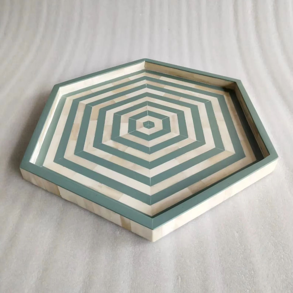 LUXERIOUS MOTHER OF PEARL INLAY TRAY:NATURAL BONE INLAY TRAY