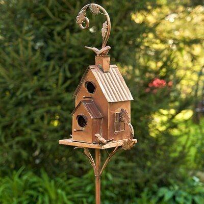 Elegante casa para pájaros de metal galvanizado con acabado naranja y alta calidad para pájaros