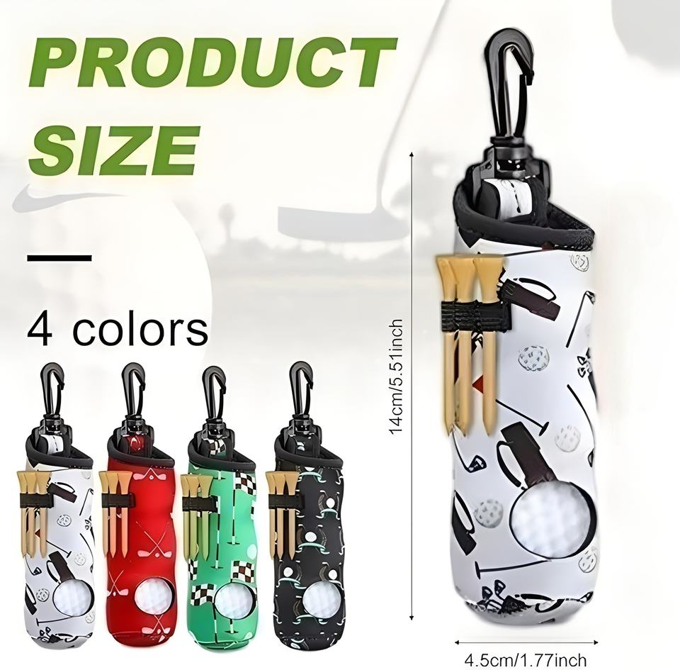 Sublimación 3 pelota de golf soporte en T bolsa de transporte bolsa de manga de almacenamiento de pelota de golf de neopreno con gancho