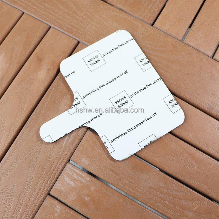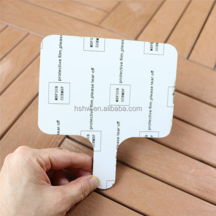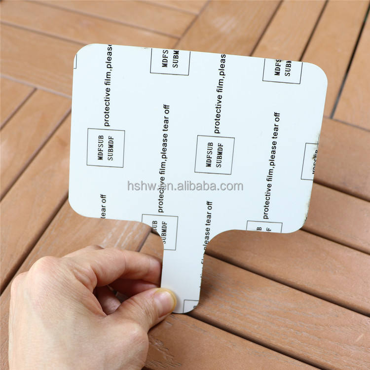 Sublimación en blanco tablero de MDF duradero de una sola cara ventiladores de mano de paleta de madera de sublimación para regalo conmemorativo de Graduación