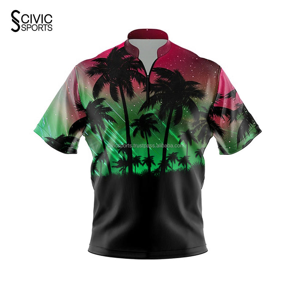 Camiseta de Bolos Sublimada, Camisetas de Bolos Económicas para Equipos, Camiseta de Bolos para Hombre con Cuello de Cremallera