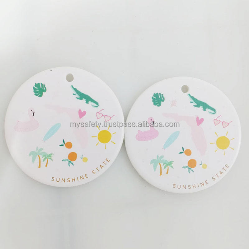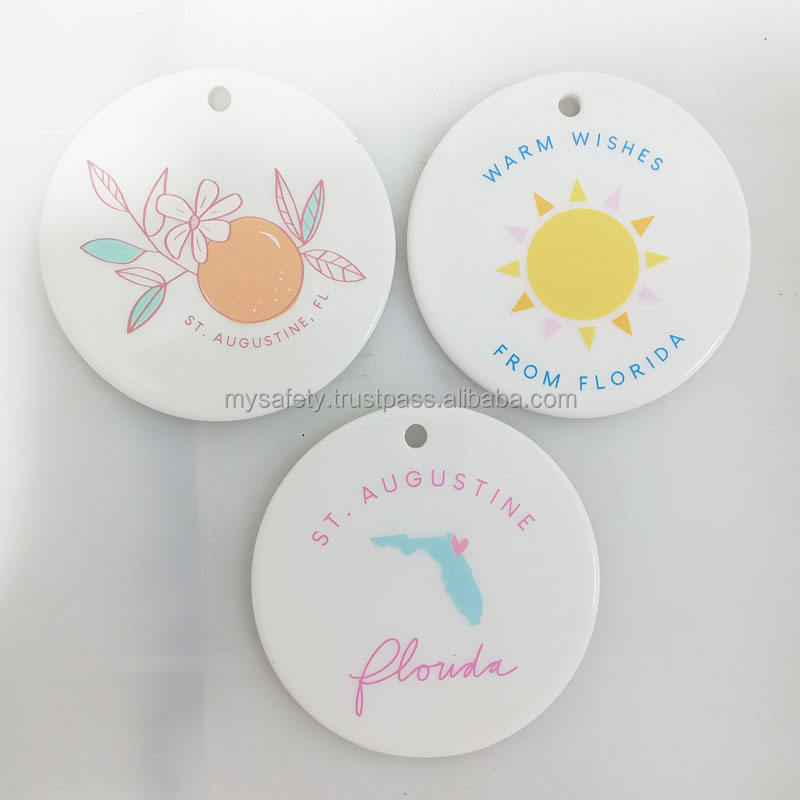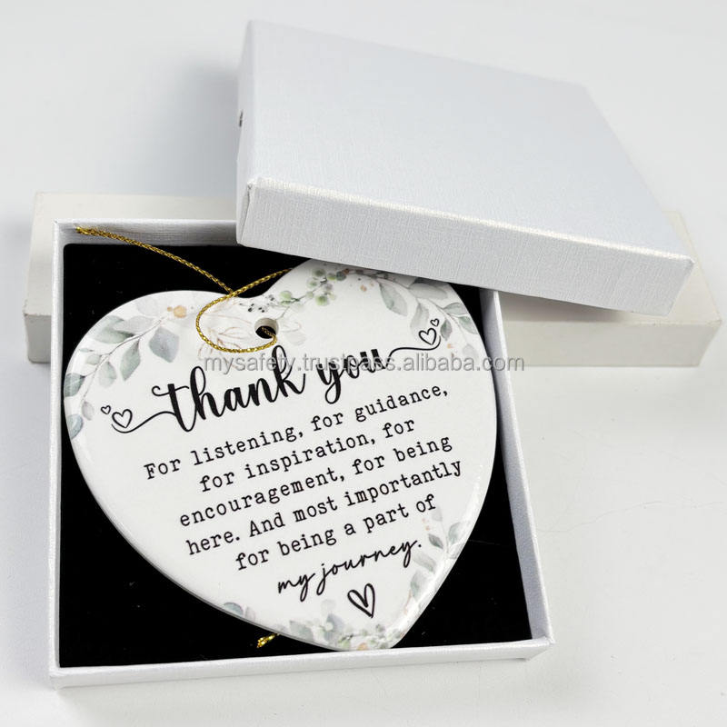 Adornos Navideños Clásicos de Cerámica Rectangulares Blancos para Sublimación, Impresión Personalizada, Ecológicos, 66 mm de Diámetro, Caja de Regalo Personalizada