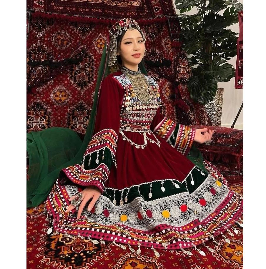 Vestido Maxi de Novia Afgano con Diseño de Bordado por Sublimación, Traje de Gasa, Conjunto de Vestidos, Traje Afgano Vintage para Exteriores