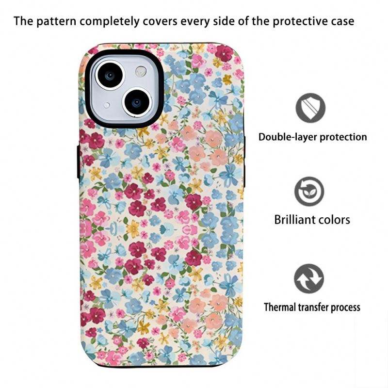 Funda para Teléfono con Diseño de Hojas de Flores Sublimadas para iPhone 16 15 14 13 12 11 Pro Max 7 8 Plus, Cubierta Trasera de Doble Capa de Lujo