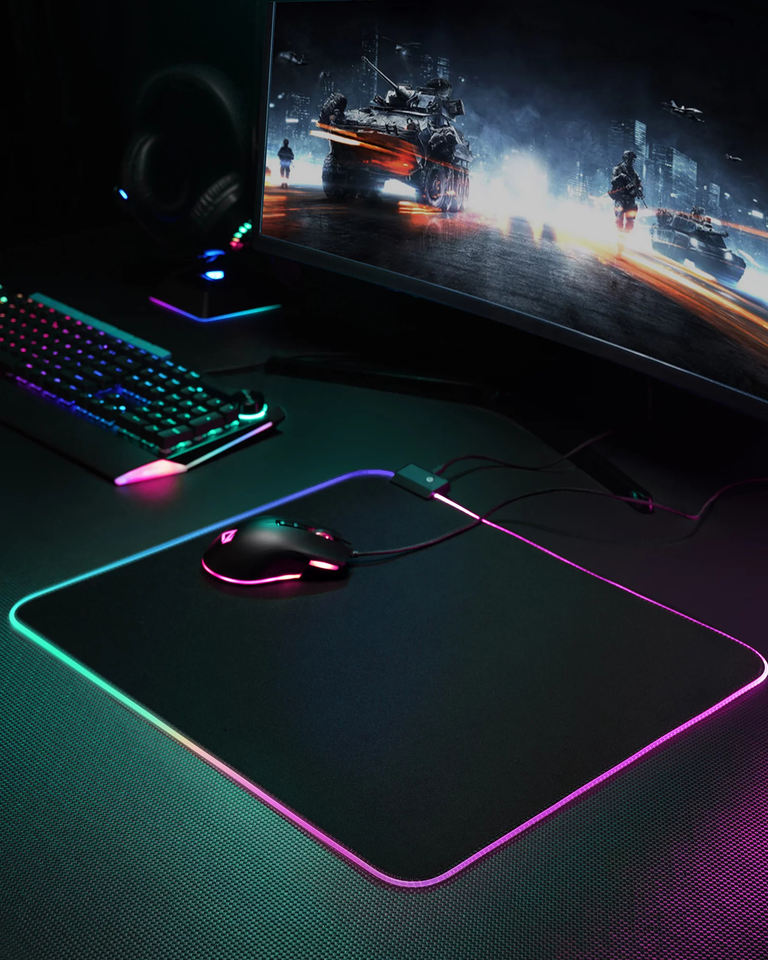 Alfombrilla de ratón RGB de goma para sublimación, alfombrilla de ratón para ordenador portátil, alfombrilla de ratón para juegos negra LED RGB de gran tamaño para jugadores