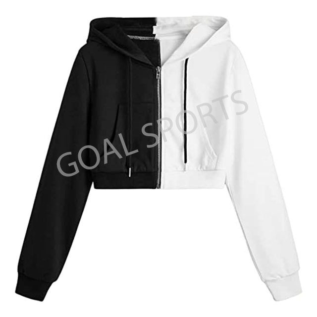 Top corto personalizable para mujer con capucha transpirable polar panel lateral sublimación último diseño de logotipo con capucha de Pakistán