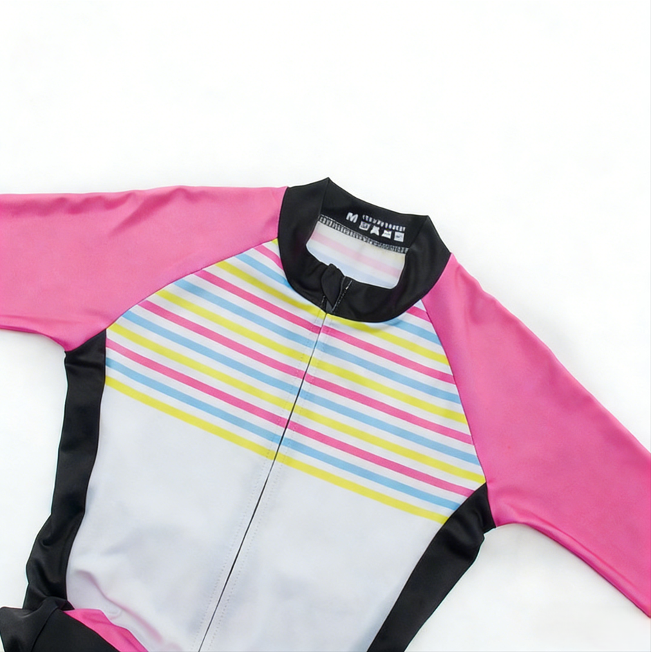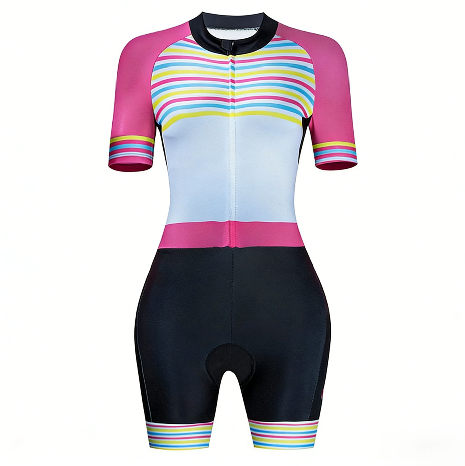 Traje de Triatlón de Alto Rendimiento con Estampado por Sublimación, Ropa Deportiva con Rayas Coloridas, Ajuste Cómodo y Secado Rápido para Carreras