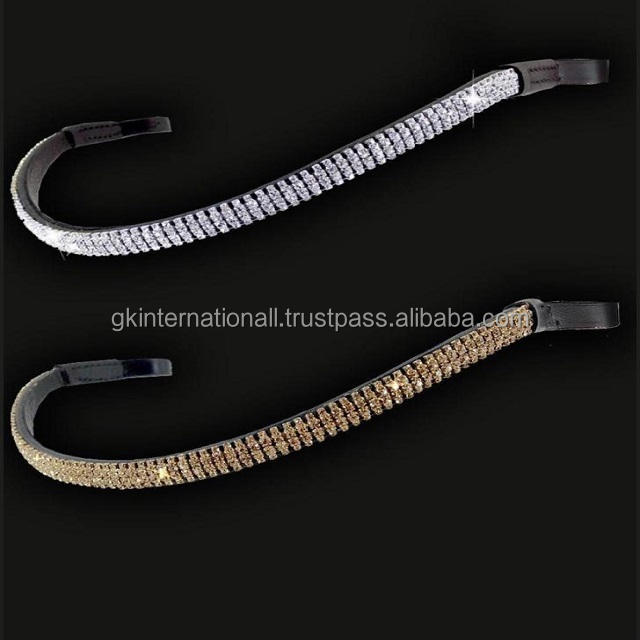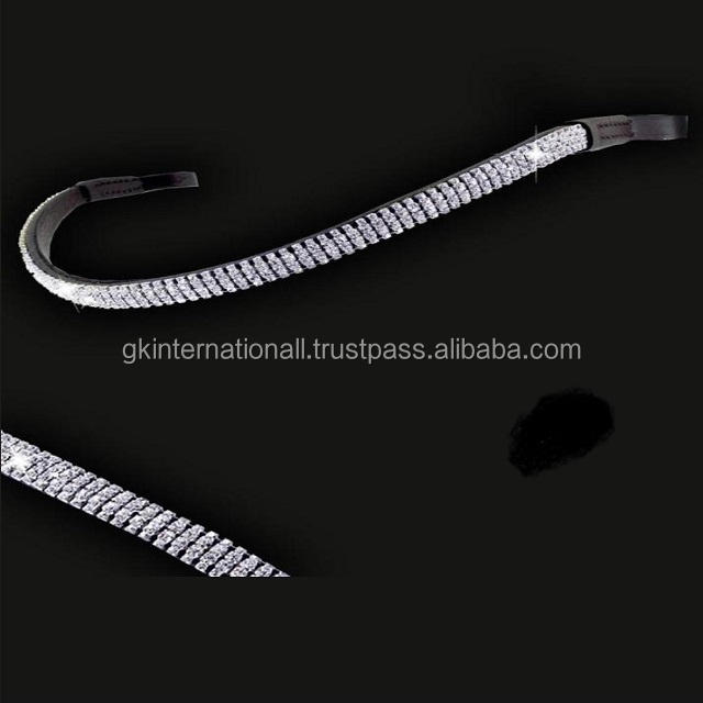 Banda de piel negra con diseño de ondas sutiles, banda para cejas de caballo de Diamante con 4 filas de cristales dorados o plateados