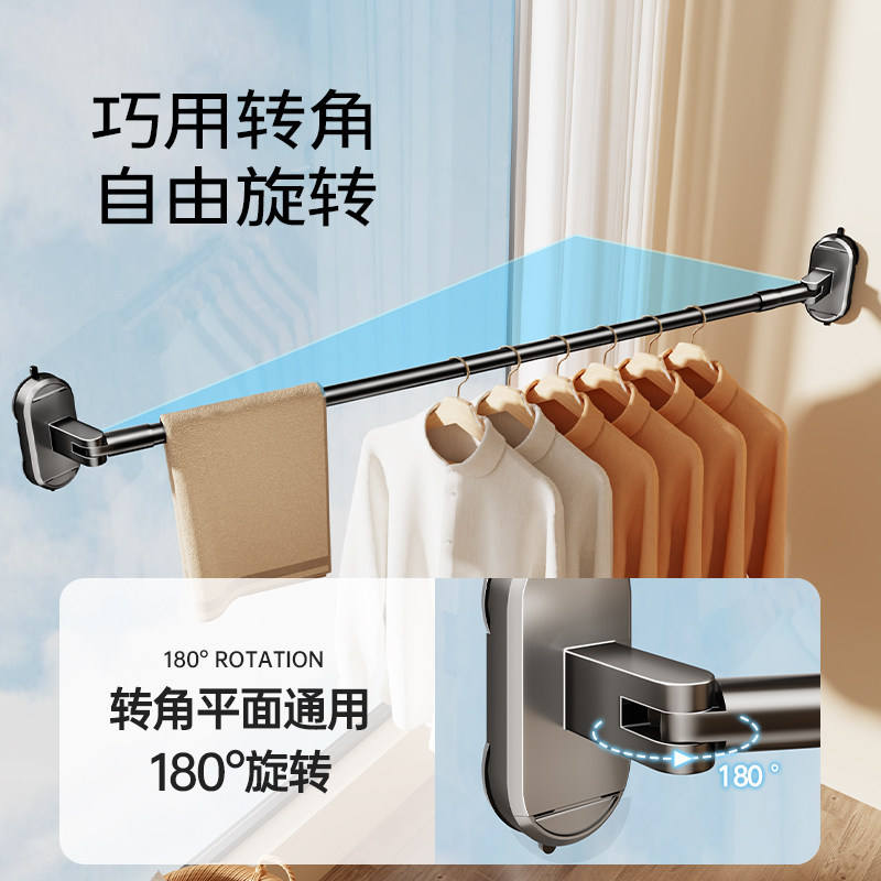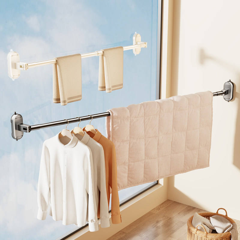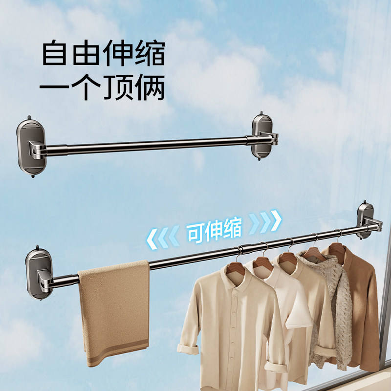 Tendedero de ropa con ventosa, telescópico, plegable, de barra única, para montar en la pared, para ventanas y balcones, que ahorra espacio.