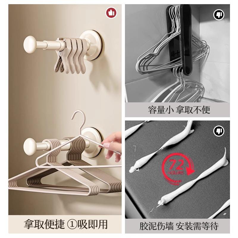 Dispositivo de almacenamiento de perchas para ropa con ventosa, telescópico, montado en la pared, para tendedero de balcón en el hogar