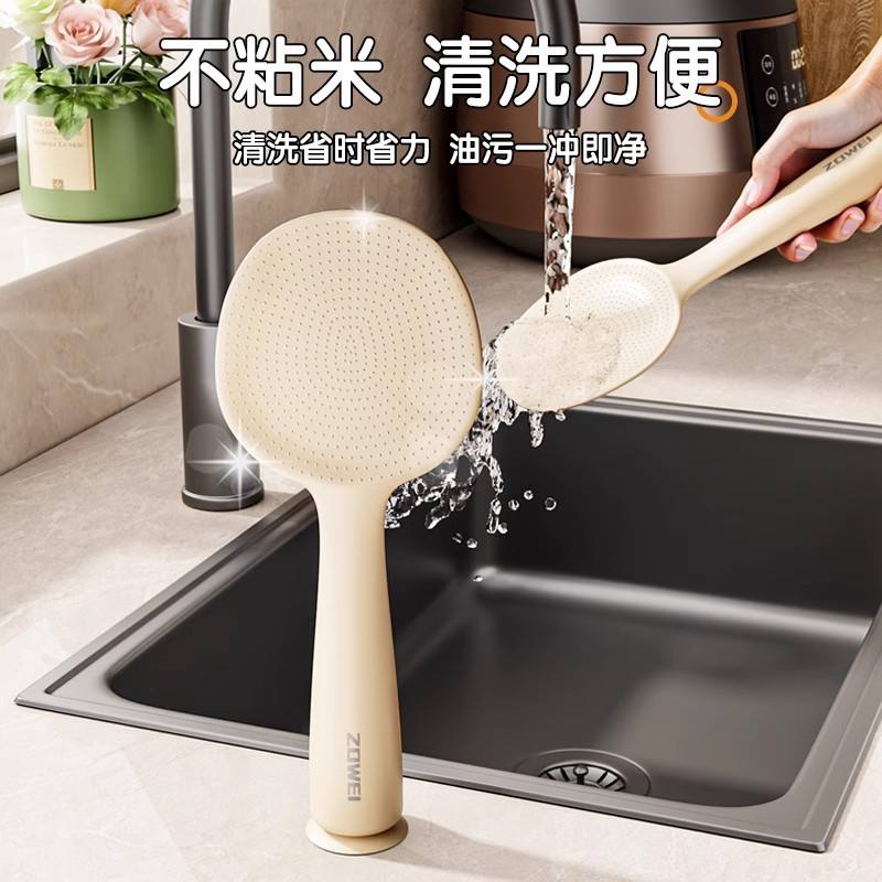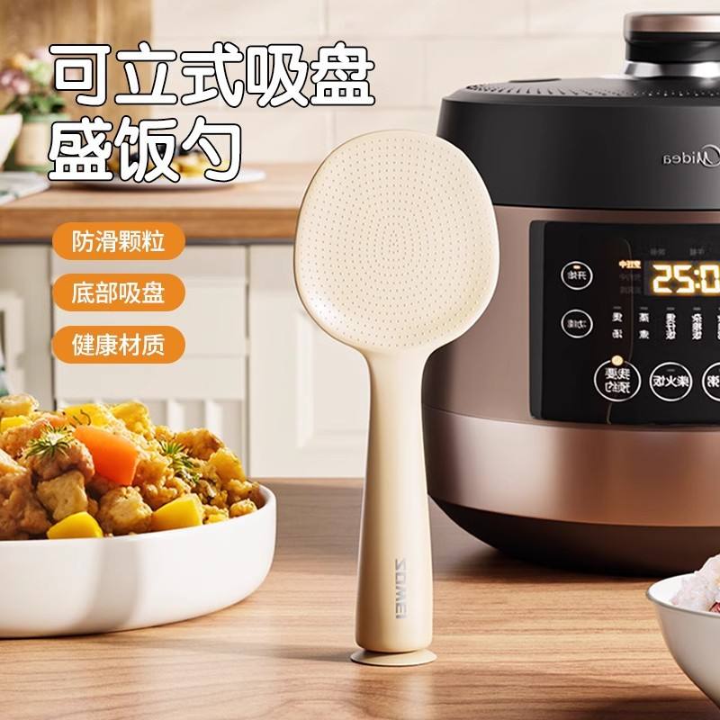 Cuchara para arroz con ventosa, doble cara, antiadherente, con soporte para colgar, almacenamiento de cocina, material plástico