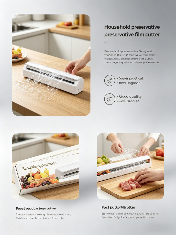 Cortador de Film Transparente con Ventosa, Divisor Doméstico Ajustable, Caja de Almacenamiento, Herramienta Creativa para Cocina