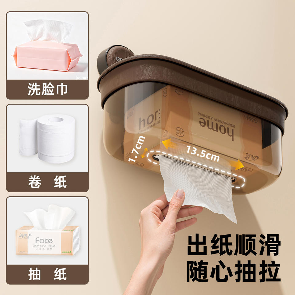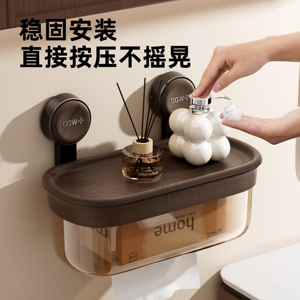 Caja de pañuelos con ventosa, montada en la pared, ovalada, impermeable, sin necesidad de perforar, para uso doméstico en el baño
