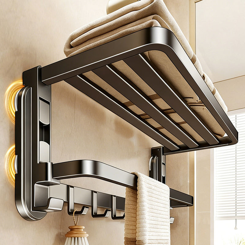 Toallero con ventosa, soporte de toallas para baño sin taladro, estante de almacenamiento plegable doble para pared, organizador de ducha
