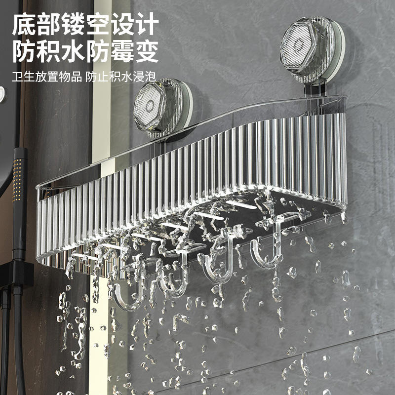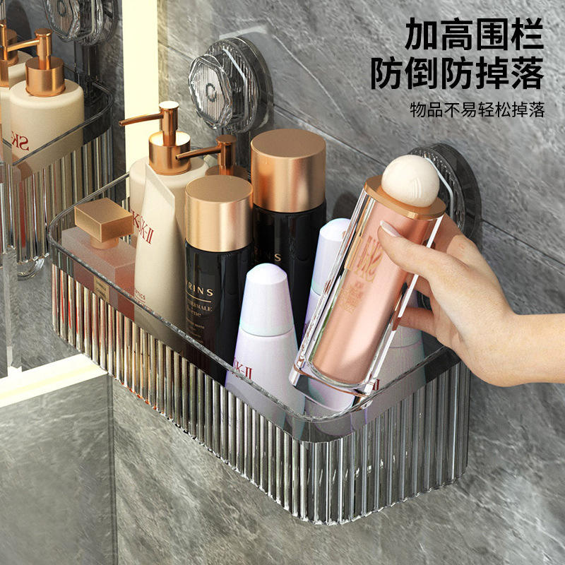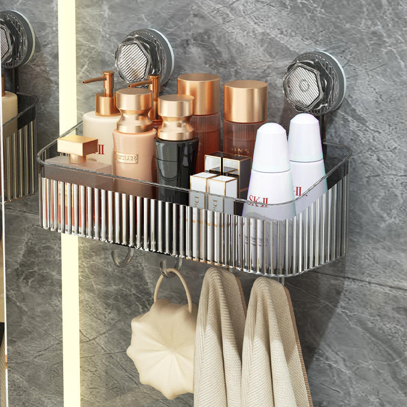 Suction Cup Wall Mounted Storage Box Rectangular Bathroom Shelf For Toiletries No Drill Pet Hanging Basket
