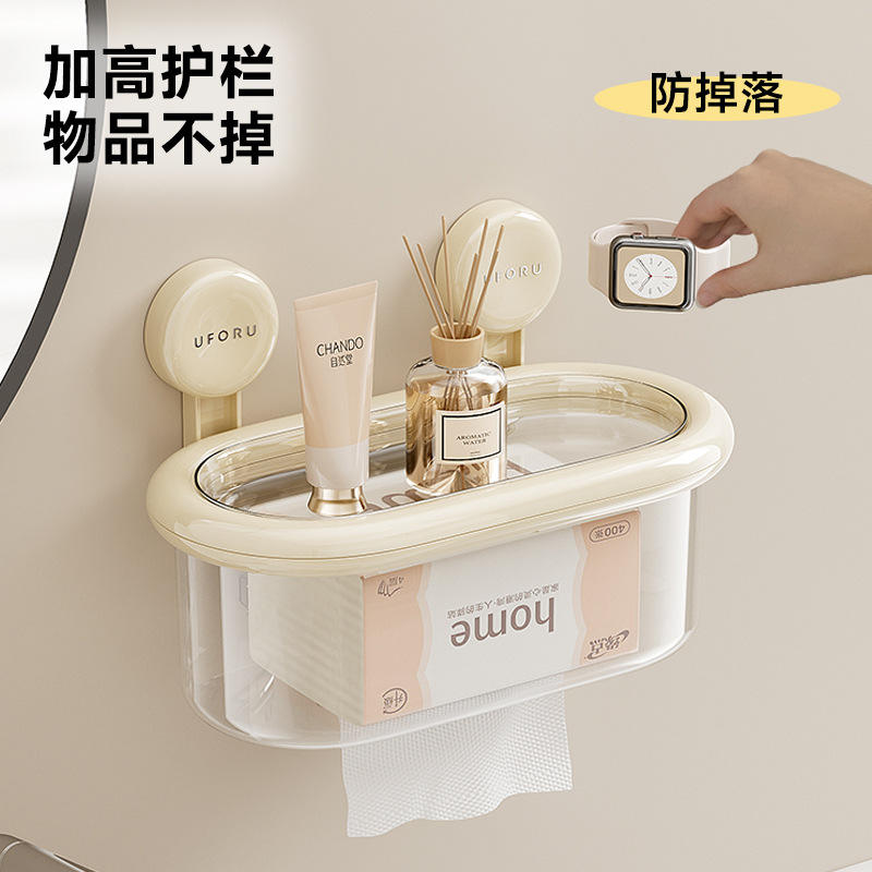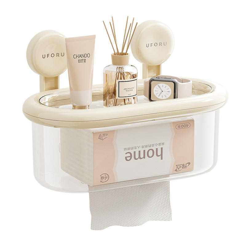 Caja de pañuelos con montaje por succión y estante para almacenamiento de papel higiénico y toallas en el baño, diseño rectangular, material duradero