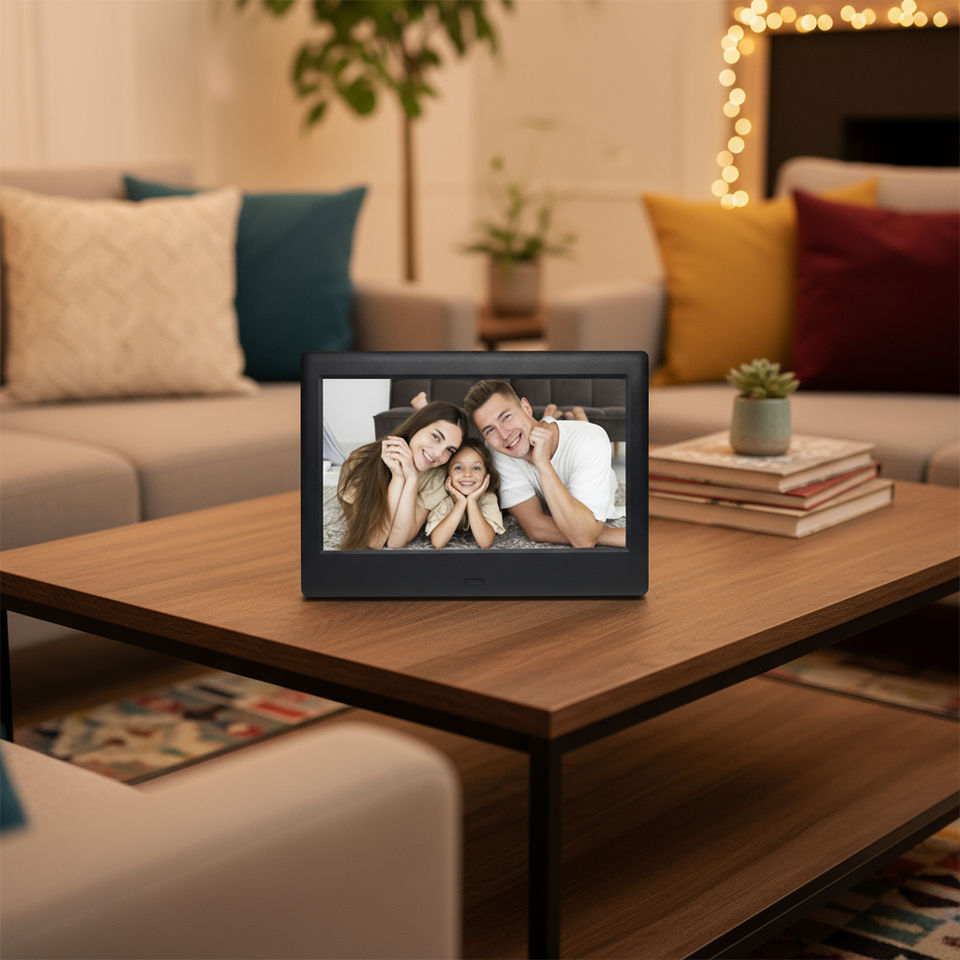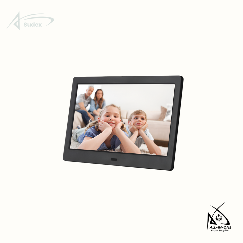 Marco de Fotos Digital Sudex con Pantalla Táctil IPS de 7 Pulgadas, Memoria Integrada, Reproducción de Video y Música, y Reloj