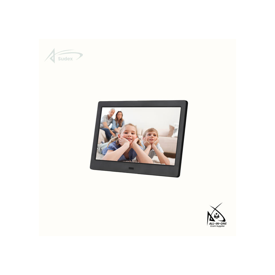 Marco de Fotos Digital Sudex con Pantalla Táctil IPS de 7 Pulgadas, Almacenamiento Interno, Reproductor de Música y Video, y Función de Reloj