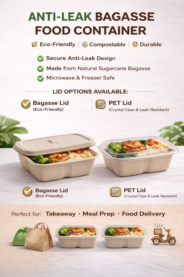 Envase Desechable Compostable de Bagazo de Caña de Azúcar con Tapa, 500ml, Anti-Fugas, Forma Rectangular, Mini Tazones para Envasado 2026