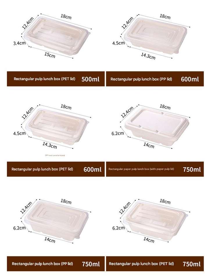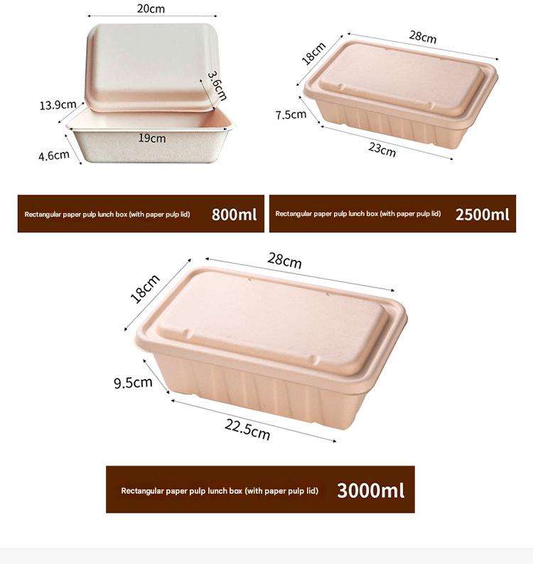 Contenedor de Alimentos Rectangular Biodegradable y Compostable de Pulpa de Caña de Azúcar, Ecológico, de 450 ml, 550 ml, 650 ml, 750 ml, con Tapa