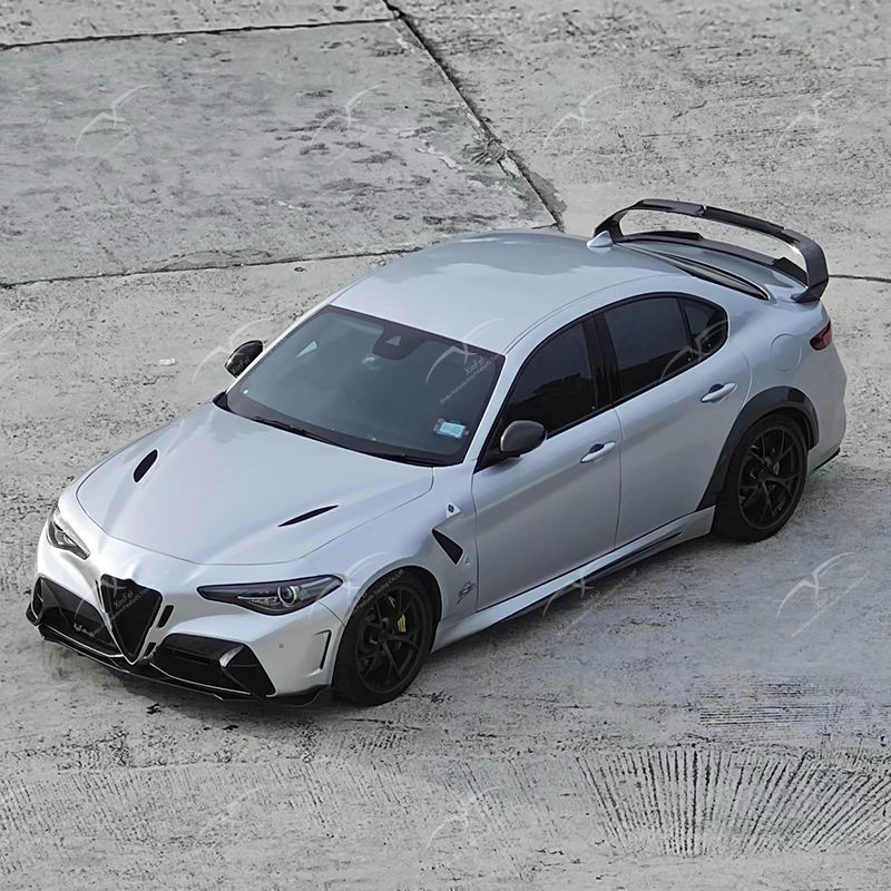 Adecuado para Alfa Romeo Giulia Kit de cuerpo ancho capó de fibra de carbono parachoques ancho alerón trasero escape accesorios decorativos GTAM