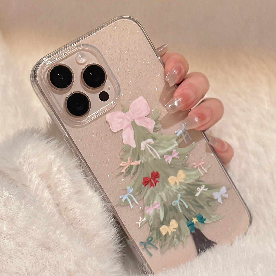 Nombre del producto:Funda para teléfono suave a prueba de golpes con lazo brillante transparente de TPU para árbol de Navidad