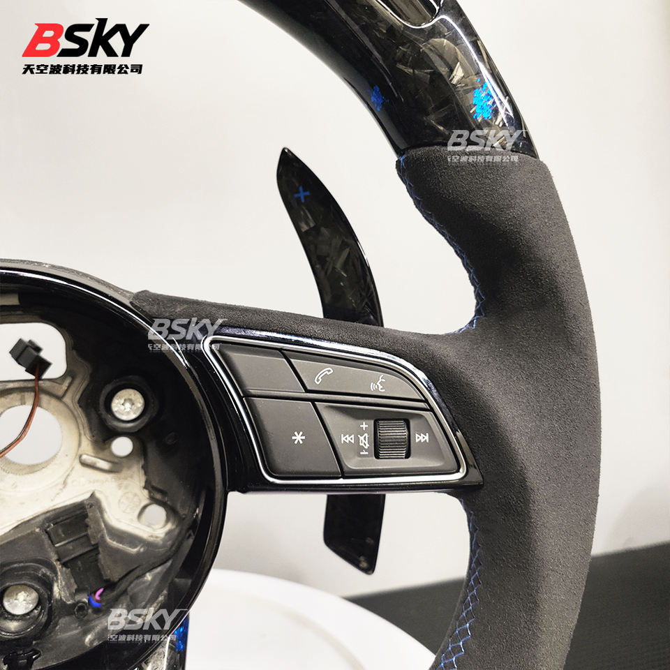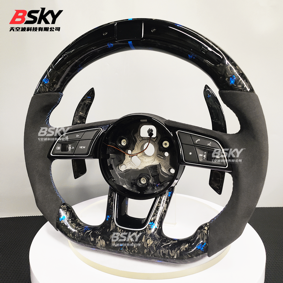 Volante de Cuero y Fibra de Carbono Forjada para Modificación Interior de Automóviles Audi, Compatible con A1 A3 A4 A5 A6 Q1 Q3 Q4