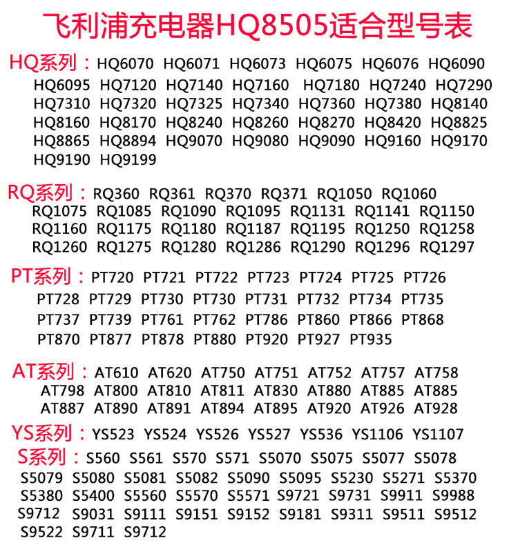 Cargador Estándar Europeo Compatible con Afeitadoras Philips HQ8505 15V S5000 HQ6070 7310 Serie S