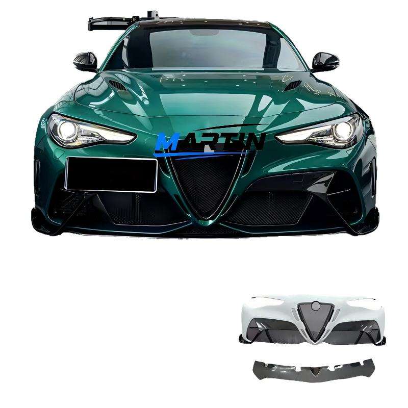 Adecuado para Romeo Giulia Modificado GTAM, Kit de Carrocería Ancha, Barra de Fibra de Carbono Semiacabada, Parachoques Delantero, Faldones Laterales, Parachoques Trasero, Labio Trasero, Rueda