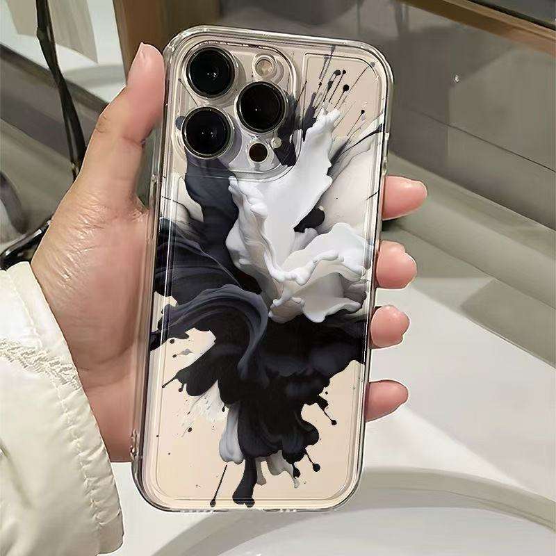 Nombre del producto:Funda para teléfono anticaída con mancha de tinta en blanco y negro creativa de TPU