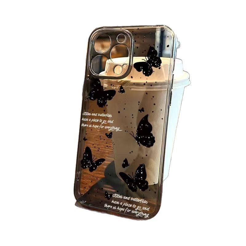 Funda para teléfono anticaída con diseño de mariposa en TPU pintado en blanco y puntos negros