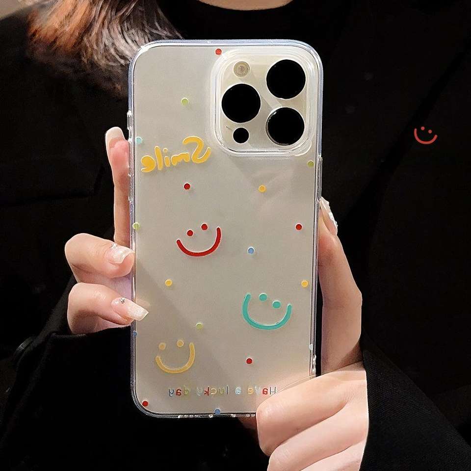 Nombre del producto:Funda para teléfono transparente a prueba de golpes con diseño de lunares coloridos y carita sonriente de TPU.