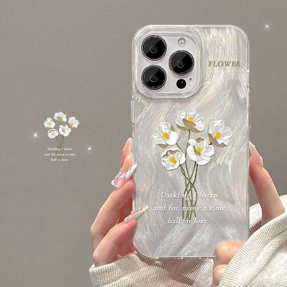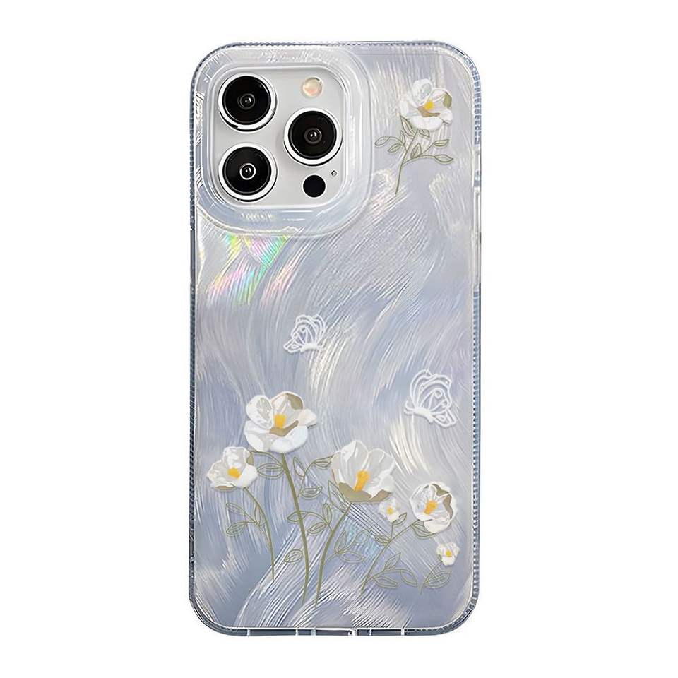 TPU Fresh White Floral Holographic Large-Hole Waterproof Phone Case