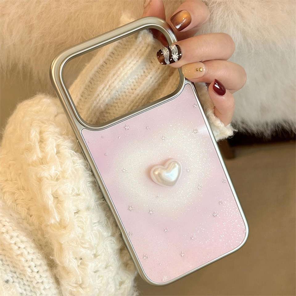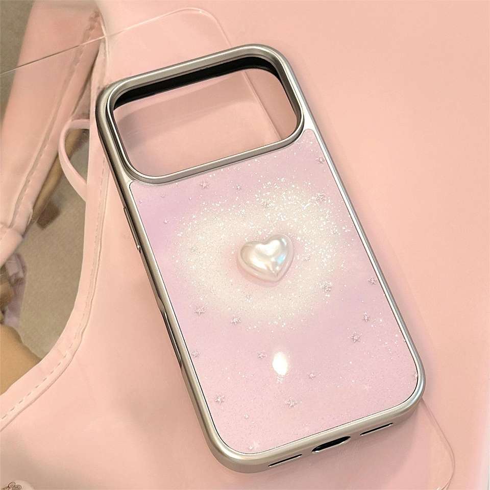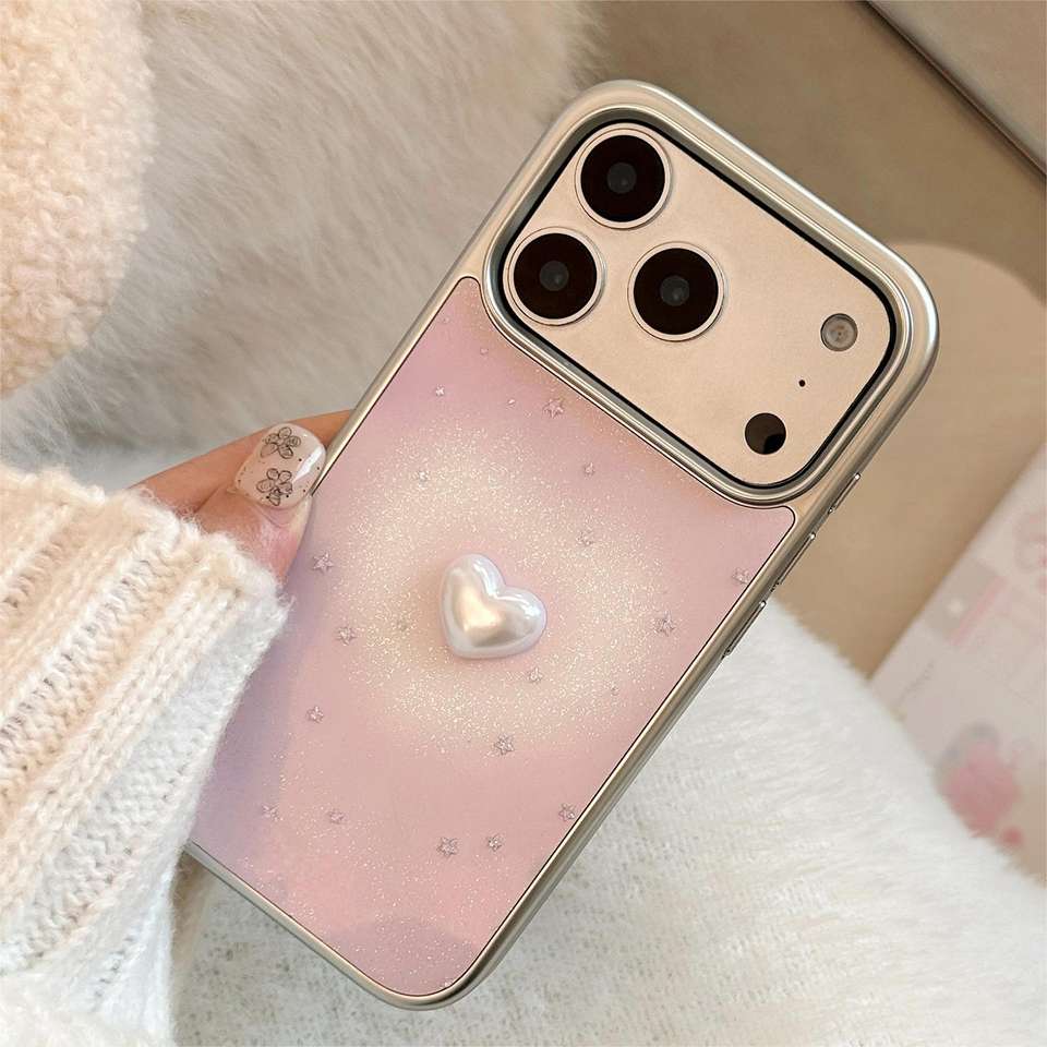 PC Pink Gradient Heart Electroplated Full-Cover Shockproof Phone Case