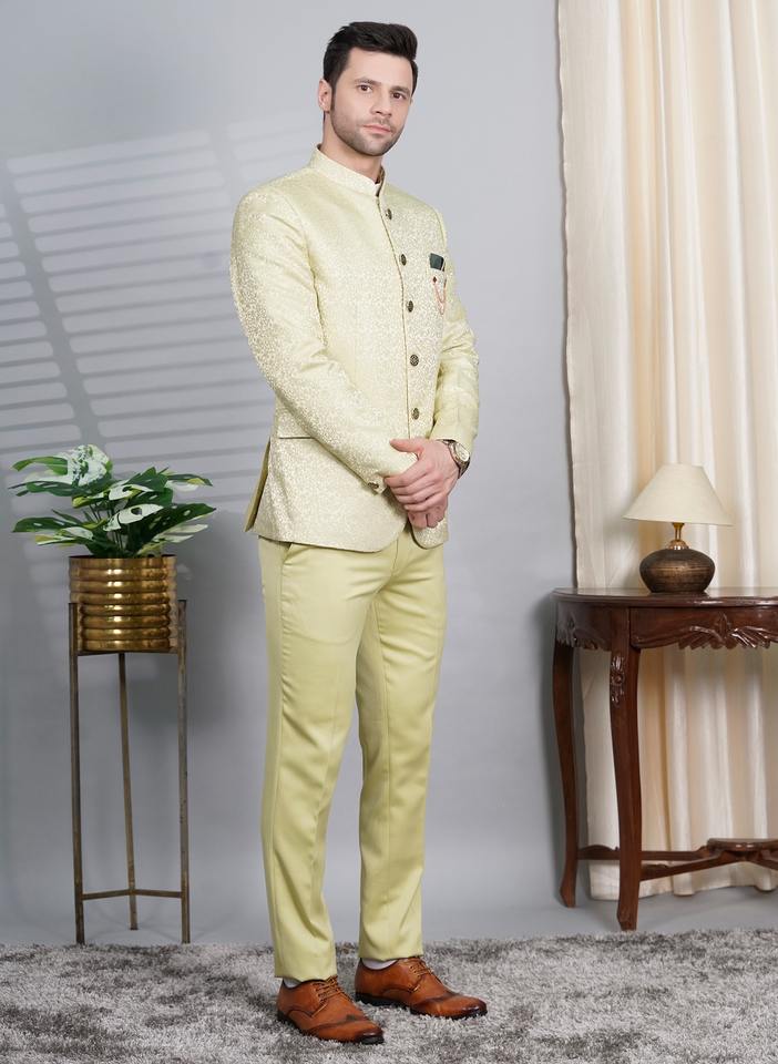 Zed Club, traje de seda antiarrugas transpirable de diseñador para hombre, cómodo cuello levantado, ajuste Regular, botón Fly, pantalón plano largo
