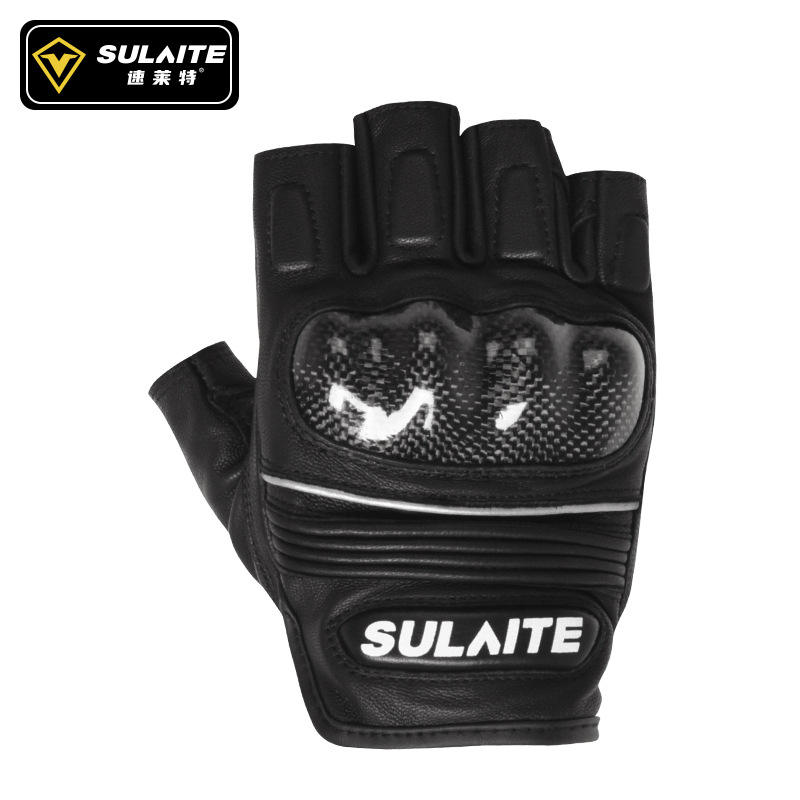 Guantes de motociclismo Sulaite, protección de fibra de carbono transpirable, negros, de medio dedo, para hombres, ciclistas adultos