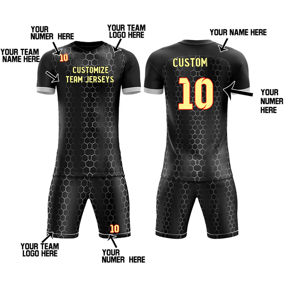 Camiseta de fútbol de alta calidad, conjunto de pantalones cortos, nombre personalizado, número, camiseta de fútbol, equipo escolar, Club, adultos, uniforme de práctica, Logo 100%