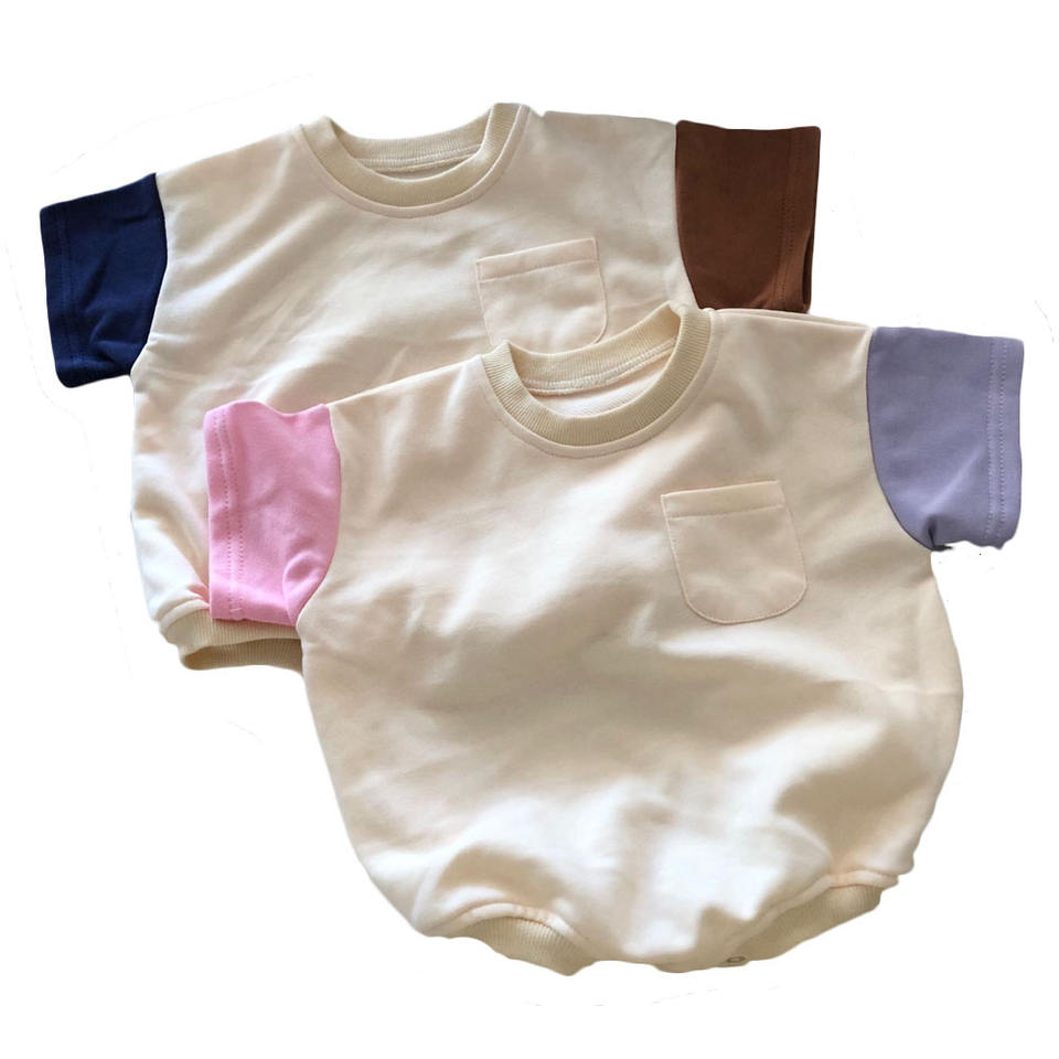 Sudadera de Verano para Bebé con Bloques de Color, Romper Tipo Burbuja de Manga Corta, Unisex, Cómodo Body con Bolsillo