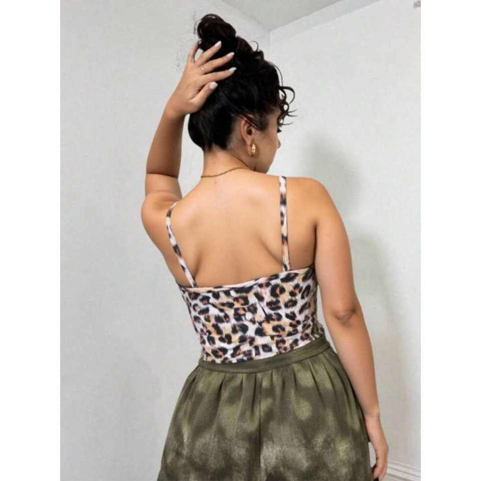 Camisetas sin mangas acanaladas informales Bohemias de verano para mujer con estampado de animales transpirable sin costuras de longitud corta Top Correa fina Camis de punto