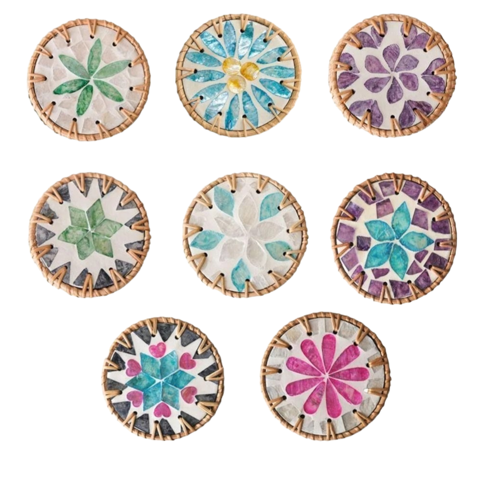 Product name:Colorful Rattan mix Mother of Pearl Coaster Holders