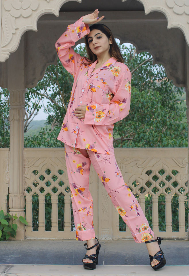 Summer Breeze 100% Poly Silk Woven Casual Pijama Set para mujer Boho Floral Print Transpirable Cómodo para uso diario y nocturno