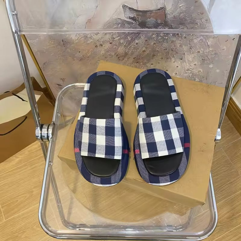 Sandalias de Diseño para Mujer, con Suela Gruesa, de Lona, con Rayas a Cuadros, Casuales de Verano, para Uso Diario