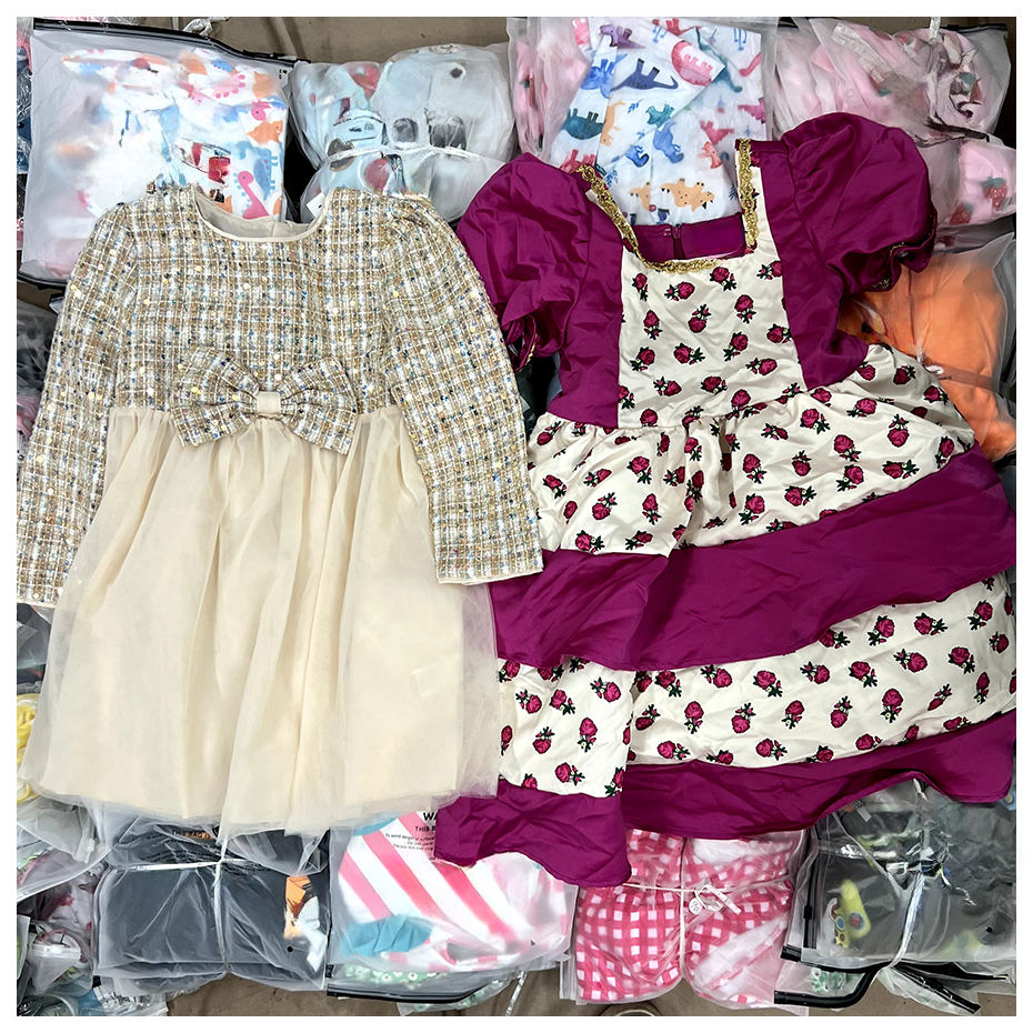 Ropa de verano para niños Nuevo estilo Vestidos para niñas Cuello de encaje Mangas voladoras Vestido de princesa floral Mezclado al azar