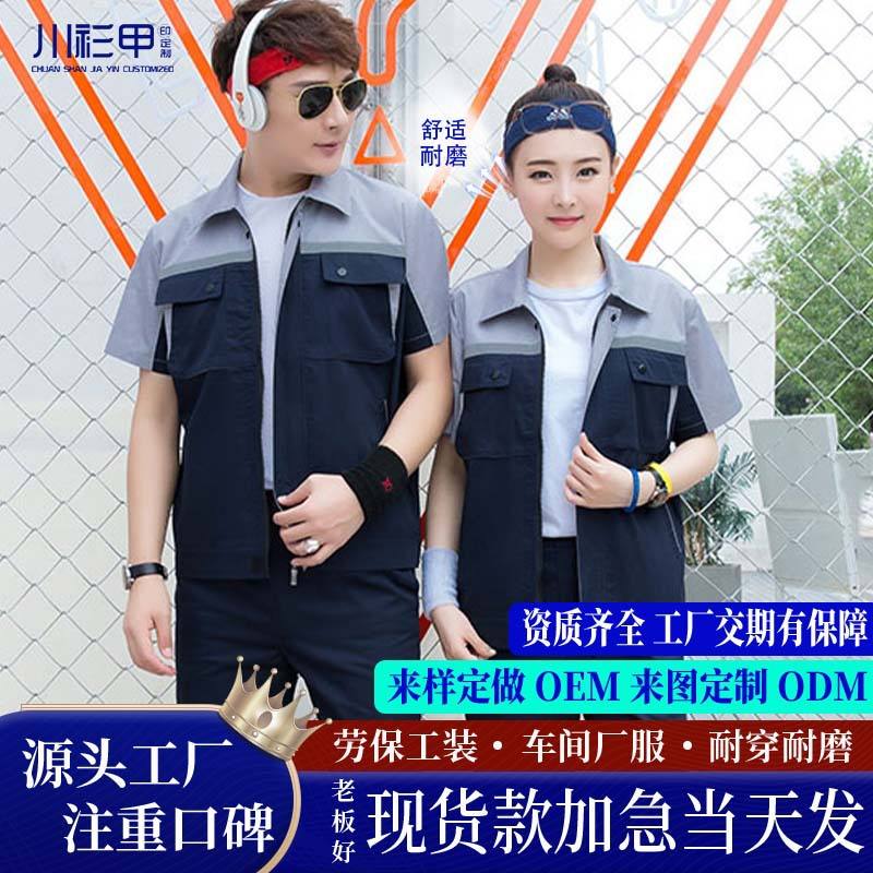 Conjunto de Uniforme de Trabajo de Manga Corta con Bloques de Color para Verano, Delgado, Transpirable, de Poliéster y Algodón, Unisex, para Taller o Fábrica, Hecho a Medida