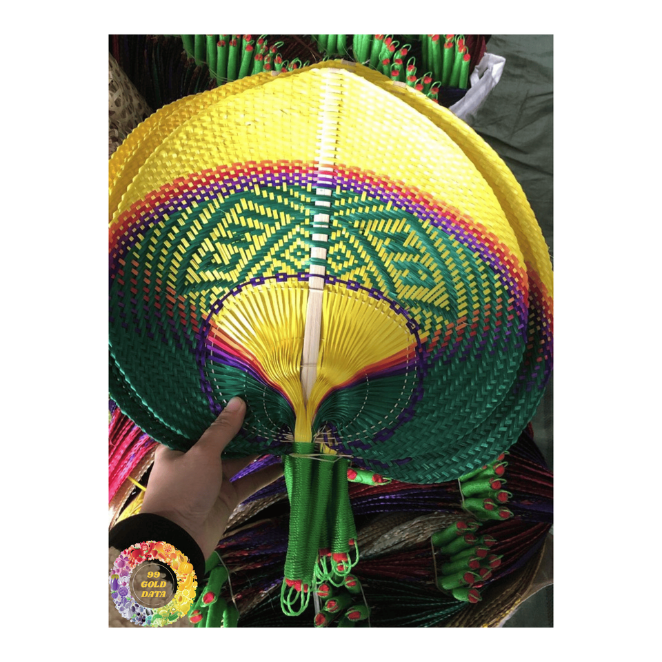 Ventilador de mano de hoja de palma de calidad superior de enfriamiento de verano, origen Vietnam, precio competitivo para regalos de boda, color personalizado.